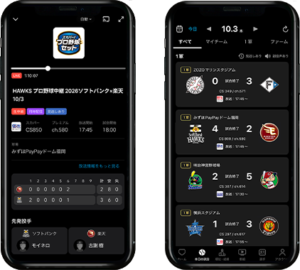 スマホのアプリで:専用の「プロ野球セットアプリ」を使えば、外出先や移動中でもスマホで生中継を楽しめます。
